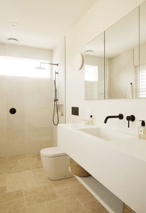 그렇지만, 이런 화이트 한 욕실들은 단점이, 손이 많이 간다는 거예요. 작은 공간도 여러 번 청소를 해주면 번거로운 공간이 되는데, 넓은 욕실이 올 화이트로 리모델링을 하게 된다면, 더 더러운 부분이 확연하게 보일 수 있고, 머리카락이나 먼지 등이 더욱 잘 보일 수 있어요. 그래서 깨끗함을 유지하기 위해 하루하루 더 청소를 해줘야 하는 부분이 생길 수 있습니다.